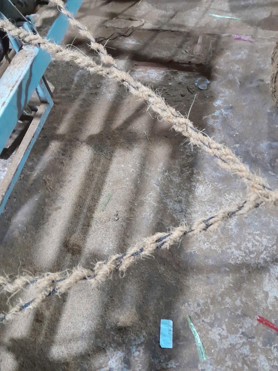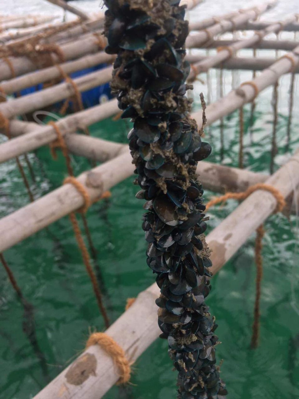 Dây thừng xơ dừa 18 ly có lõi cọng nhựa sau khi được sử dụng và thu hoạch vẹm, hải sản khác vẫn bền chắc,